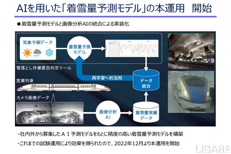 西日本旅客鉄道株式会社(以下、JR西日本)は、AIを活用した「着雪量予測モデル」の本核的な運用を開始する。11月30日付のプレスリリースで明かした。同モデルは、2020年度より試験運用を開始していたものだ。