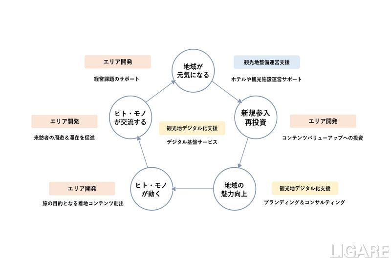 JTBは、これまで「観光地デジタル化支援事業」「観光地整備・運営支援事業」および「エリア開発事業」により、観光地、観光事業者および旅行者の課題解決に貢献。同時に、観光地を一つのテーマパークに見立て、観光コンテンツをつなぎ、エリア全体の価値を高めることで、交流創造事業の実現に取り組んできた。