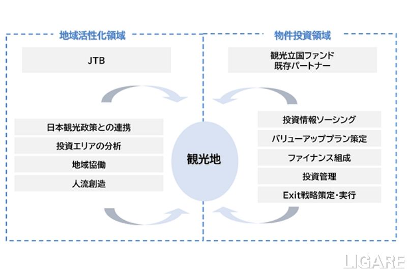 地域創生ソリューションは、「ALL-JAPAN 観光立国ファンド」を2018年から運営している。JTBは、同ファンドが持つ観光地バリューアップ投資機能、観光関連企業への支援機能と、JTBが地域で培ってきた知見・ノウハウ、経験、ネットワークを組み合わせる。これにより、観光地に新たな価値を創出し、その持続的な発展に寄与する。