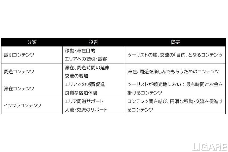 さらに、JTBは、観光地の持続的な発展に貢献するために必要なコンテンツ群を、誘引コンテンツ、周遊コンテンツ、滞在コンテンツ、インフラコンテンツの4つに分類している。同社は、この4種類のコンテンツを整備することで、観光地においては地域価値の向上、観光客においては交流の実感価値向上につなげる予定だ。