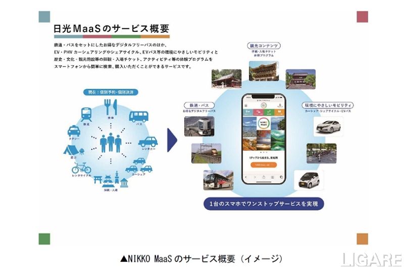 「NIKKO MaaS」は、東武鉄道、株式会社JTB、栃木県、株式会社JTBコミュニケーションデザイン、オリックス自動車株式会社及び株式会社トヨタレンタリース栃木で取り組む。東武鉄道は2020年10月21日、JTBグループと共に栃木県日光地域でのMaaS導入に向けた具体的な検討に着手すると発表していた。