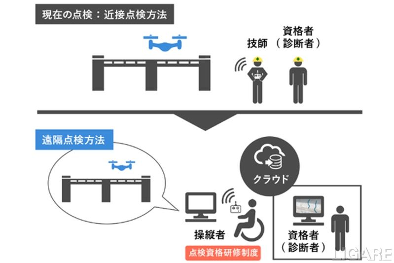 同事業は、内閣府の公募事業だ。事業内容1として「身体に障がいのある人による橋梁のドローン点検を実現するための技術的要件(点検資格、ドローン操縦資格等)の整理と模擬点検資格研修」を実施する。ほかにも、事業内容2として、「インフラメンテナンスのデジタルツイン管理に求められる要素※1の整理と、橋梁の管理状態に関する情報※2をレイヤー表示した3次元モデルの構築」を行う予定だ。