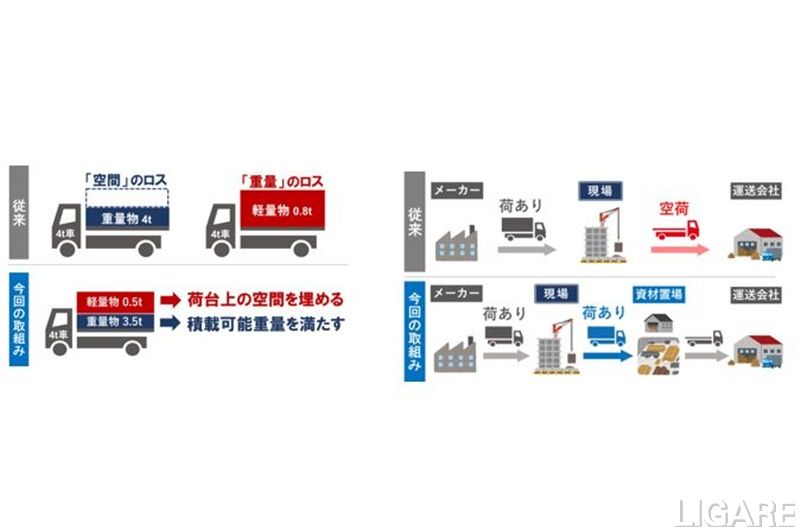 低積載を解消する取り組みのイメージ(左)、空荷を解消する取り組みのイメージ(右)