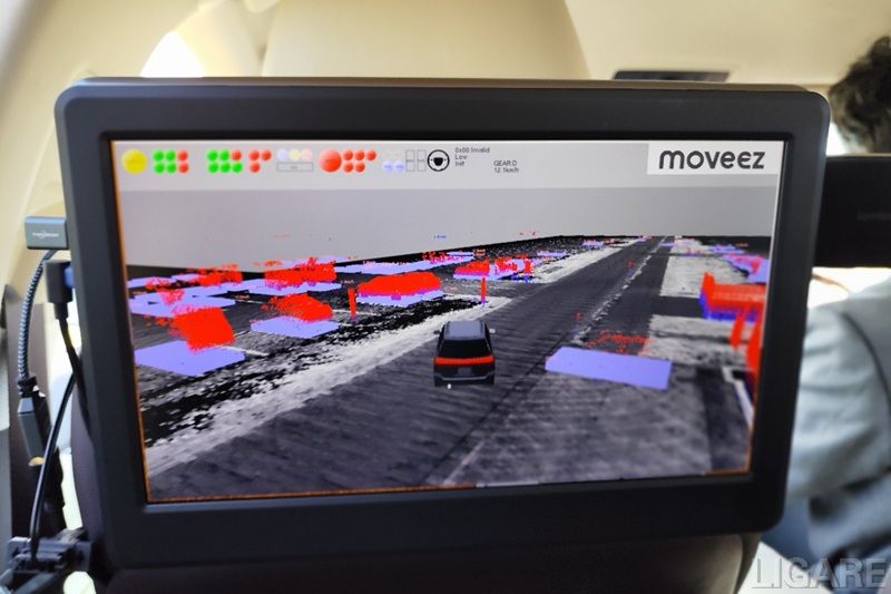 この滑らかな運転を支えているのは何か。試乗後、教授の指す車両のルーフに目をやると、大型のLiDAR(ライダー)が鎮座し、その下に設置された8台のカメラが見える。これらの「目」が周囲360度を監視し、捉えた膨大な情報は、車内のモニターに集約される。菅沼教授が手元の端末を操作すると、モニター画面の認識モードが切り替わる。そこには、周囲の車両や自転車が、赤や黄緑の四角いオブジェクトとしてリアルタイムに表示されていた。それはまるで人気ゲーム「マインクラフト」のようである。「車両から見える全てのオブジェクトを認識し、これらのデジタルな情報を解析した頭脳が、アナログで自然な運転を生み出しているんです」と、教授が説明する。
