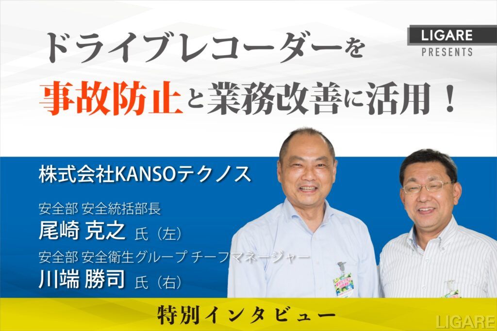 株式会社KANSOテクノス(以下、KANSOテクノス)は、社有車による労働災害、つまり交通事故を防止するためにドライブレコーダーを役立てている。環境・土木・建築とさまざまな現場に出向く企業ならではの活用方法と、事故防止の取り組みについて、同社の安全部に所属する尾崎克之氏と川端勝司氏に話を伺った。