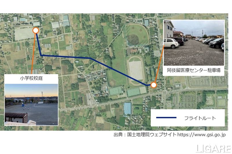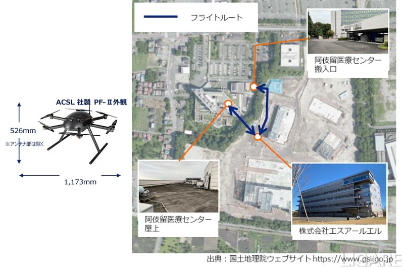 具体的には、「ドローンによる医療物資輸送の長期運用実証」と「ドローン物流の社会受容性向上に向けたイベント」を実施する。「ドローンによる医療物資輸送の長期運用実証」では、公立阿伎留(あきる)医療センターと株式会社エスアールエル セントラルラボラトリーの間で飛行ルートを設定し、物流用ドローンの自律飛行による医療物資輸送を行う。