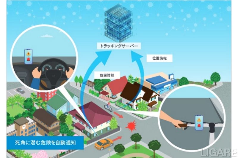 また、KDDIは、同実証に向けて、トヨタと共に、自転車・原動機付自転車・自動車が同じ交差点に接近した際にそれぞれの運転手のスマートフォンへ自動通知する機能を開発した。同機能は、GNSS(全球測位衛星システム)で計測したスマートフォンの位置情報をもとに予測したものだ。これにより、交差点の死角に隠れている自転車・原動機付自転車・自動車の存在を、安全面に配慮した通知によってそれぞれの運転手が事前に把握することができる。