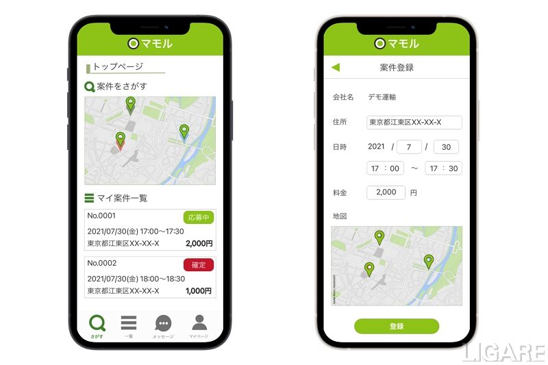ケイソーは、首都圏と九州で軽貨物配送サービスを提供している企業だ。START WITH WHYは、物流マーケティングサービス「PARELL!」を運営している。「マモル」は、配達事業者と近くにいる見守りたい人をつなぐマッチングサービスだ。車を止めて配達をしている間、荷物の盗難や車両へのいたずらを、簡単に近くにいる人に見守ってもらうことができる。