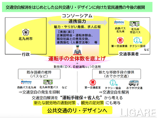 北九州市では、市がバスのみならずタクシー会社と連携協力し、乗務員の採用支援と同時に省人化の取り組みに同時に力を入れている。これが公共交通のリ・デザインにも欠かせないと考えているからだ。