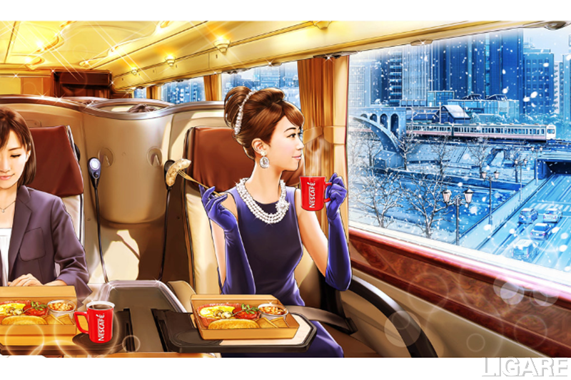 ケイエム観光バスとネスレはその背景を受け、日々の満員電車による通勤で疲れている人の一日の始まりを応援するために、予約制の特別バスを期間限定で運行する。