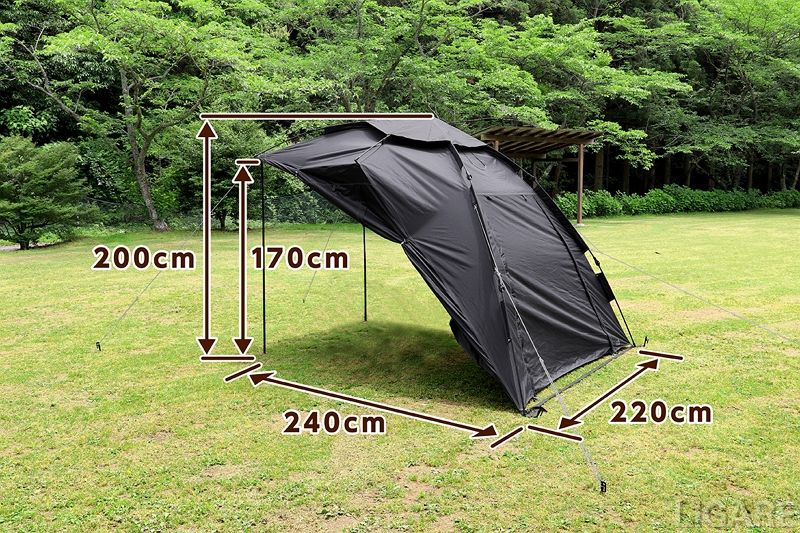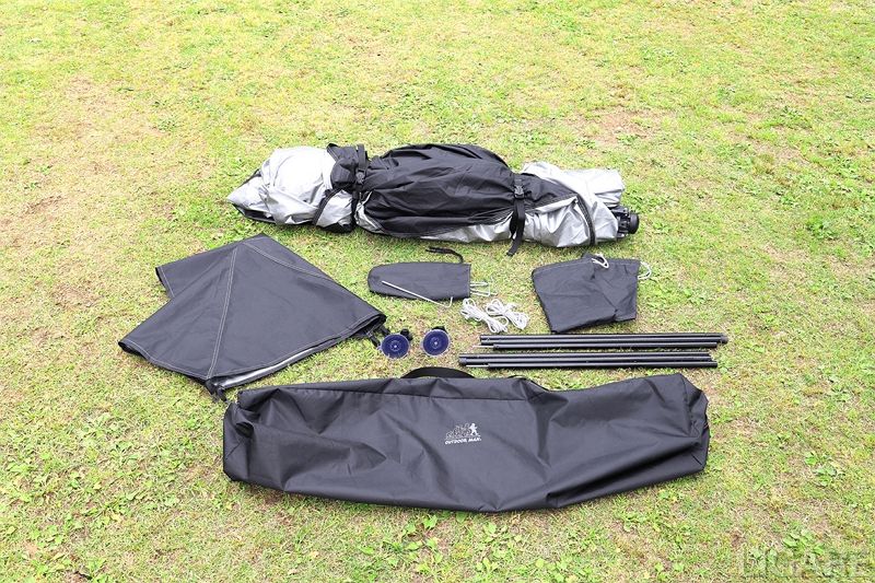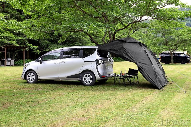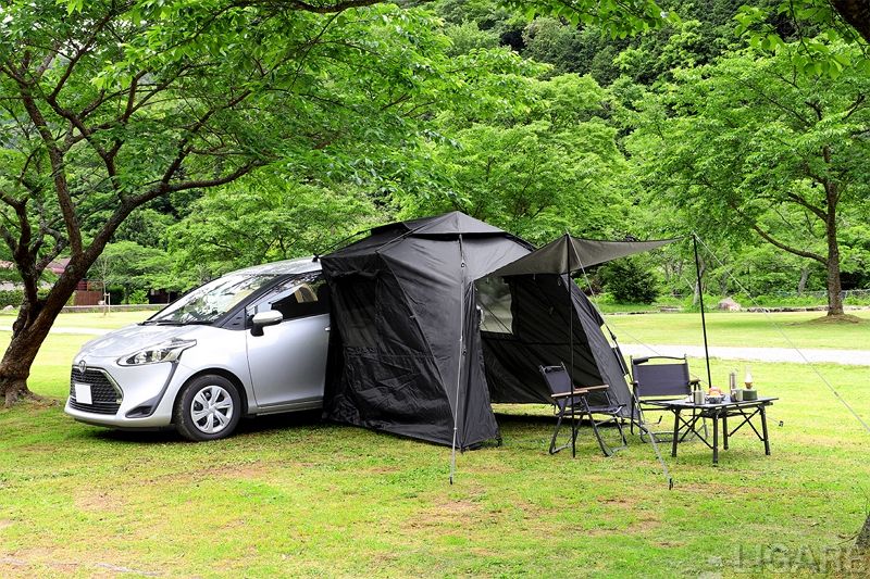 約5分で簡単設営 さまざまな車種に対応したカーサイドタープ登場