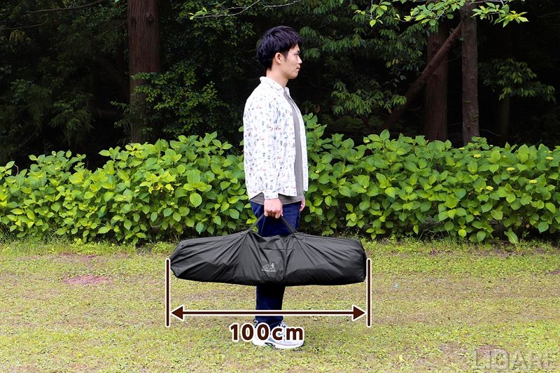 「カラップ」の特徴は、初心者でも約5分で簡単に設営可能であり、いろんな張り方と使い方ができる点だ。車のサイドゲートだけではなく、リアゲートにも設営できる。軽自動車から普通乗用車まで、いろんな車種・車高に対応しており、シートは急な風や雨にも耐える強度と遮光性を兼ね備えている。付属の収納バッグを使えば、重量約6kg、幅1mにまとめることが可能だ。