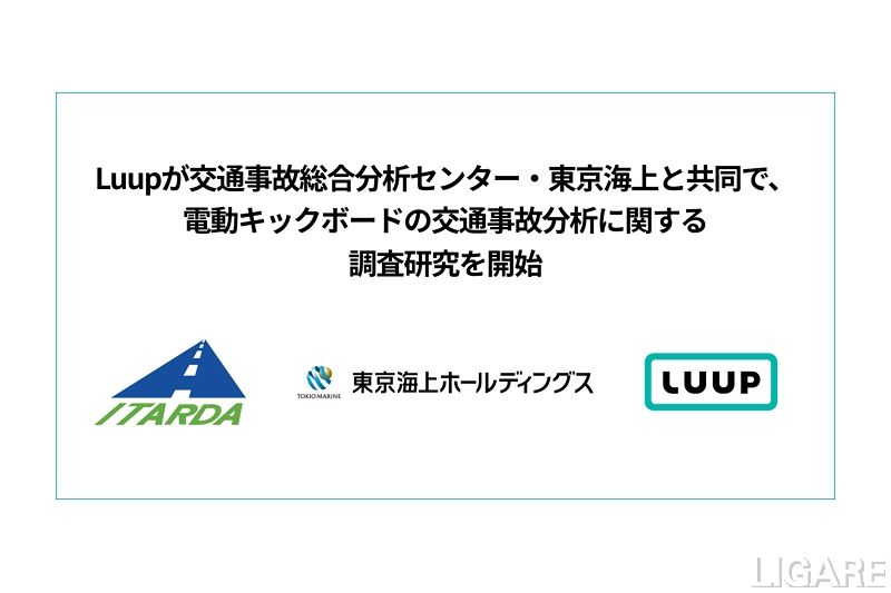 株式会社Luup(以下、Luup)は、公益財団法人交通事故総合分析センター(以下、ITARDA)、東京海上ホールディングス株式会社(以下、東京海上)と連携し、電動キックボードの交通事故総合分析に関する調査研究を開始した。2月28日付のプレスリリースで明かしている。