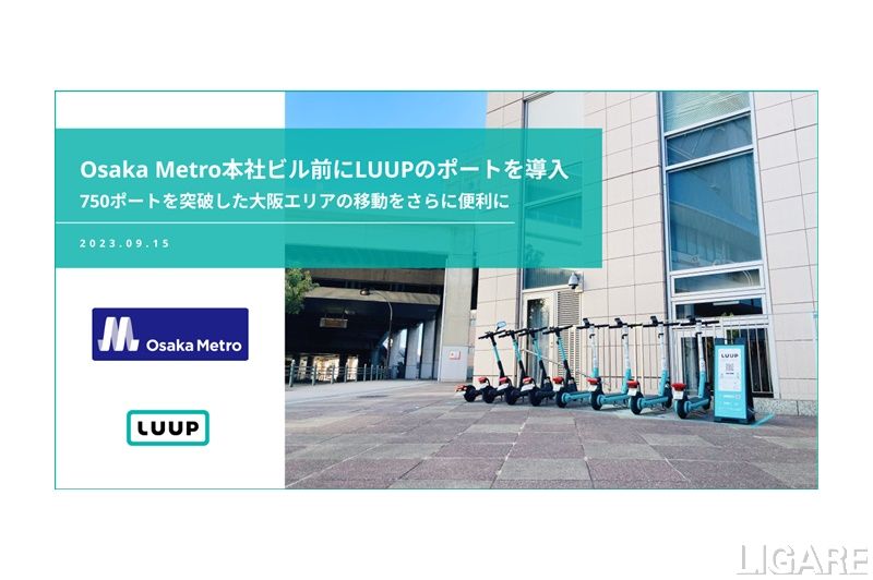 株式会社Luup(以下、Luup社)は、大阪市高速電気軌道株式会社(以下、Osaka Metro)本社ビル前に電動マイクロモビリティのシェアリングサービス「LUUP(ループ)」のポート導入を発表した。