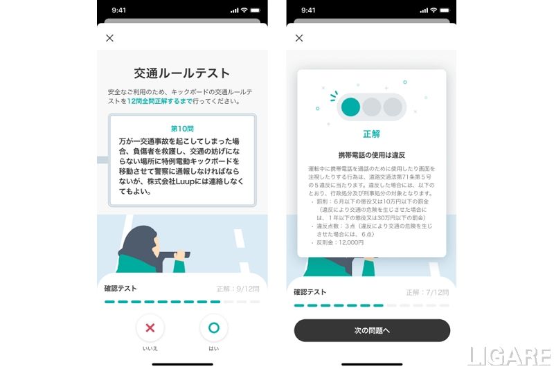 また、Luupは、これまでにも「運転免許証の登録」、「交通ルールテストの全問正解」といった取り組みを行っている。交通ルールテストは、関係省庁により監修、作成されているものだ。