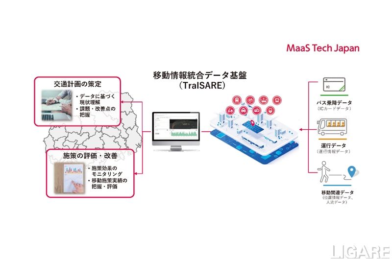 「TraISARE」は、2021年4月22日にβ版が完成。国内の1万以上の交通事業者が保有する数々のデータ全ての取り扱いが可能となった。同事業では、「TraISARE」を導入・活用した分析モデルの検討、MaaSデータの取得及び分析ダッシュボードを開発する。
