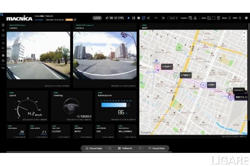 具体的な実証内容としては、自動運転EVバス「EVO」のデモンストレーション走行と、「マクニカ・モビリティ・データ・プラットフォーム」を用いた遠隔監視を行う。デモンストレーション走行では、日本丸メモリアルパーク敷地内を走行。同時に、車内ではスマートグラス「Nreal Air」(エンリアルエアー)を用いた未来の観光体験を楽しむことができる。