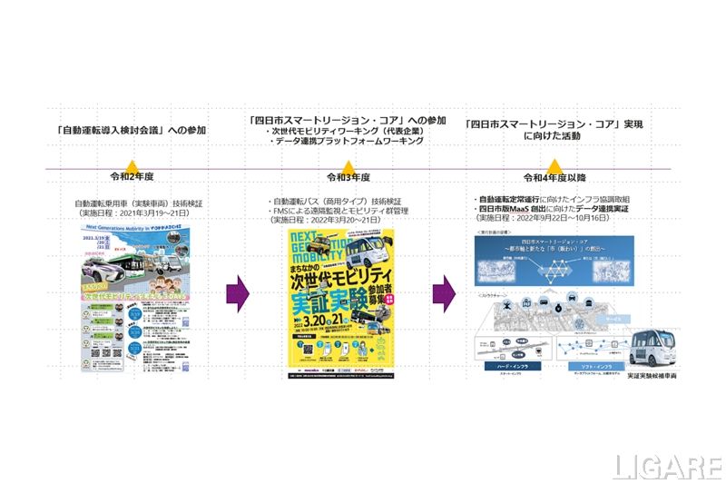 マクニカは、四日市市が「自動運転導入検討会議(2019年度発足)」にて実施した自動運転車両を活用した実証実験等に参加している。これらの活動を通して、四日市市の新たなまちづくりの中における自動運転車両を活用したサービス創出活動を実施している。