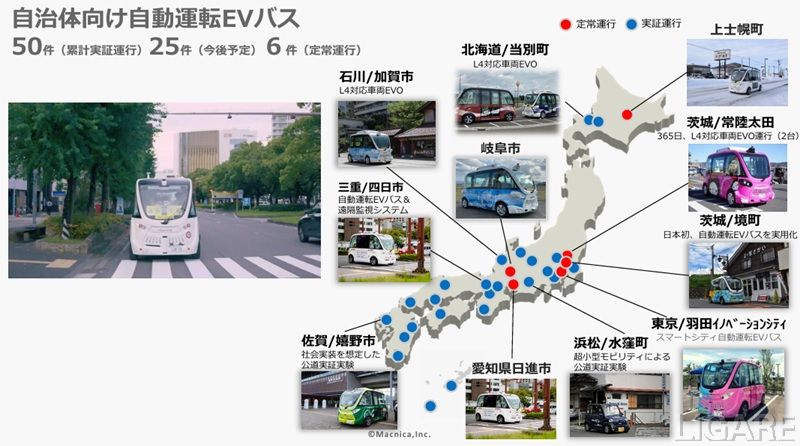 これまでマクニカが主体となって実施した実証実験は累計で50件以上にのぼり、Navya車両を用いた定常運行も6件関与しています。特に茨城県常陸太田市では、第2世代車両「EVO」を用い、日本で唯一となる年間365日の定常運行が実現しました。持続可能な運用のモデルケースとして現在も運行を継続しており、遠隔監視型レベル4を見据えて現地に「遠隔運行管理センター」も設置しました。