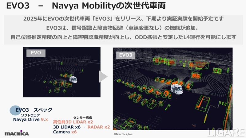 今年度は、主に新型車両「EVO3」を使い、約25件の実証実験を予定しています。国の目標達成に貢献するという側面もありますが、我々の目的は単にレベル4を達成することだけではありません。むしろ、そこからが本番です。レベル4運行を実現する目的と、それを使って「持続可能な低コストのサービス」と「魅力あるまちづくり」を実現する目的。我々はこの両輪を同時に進めていく必要があると考えています。