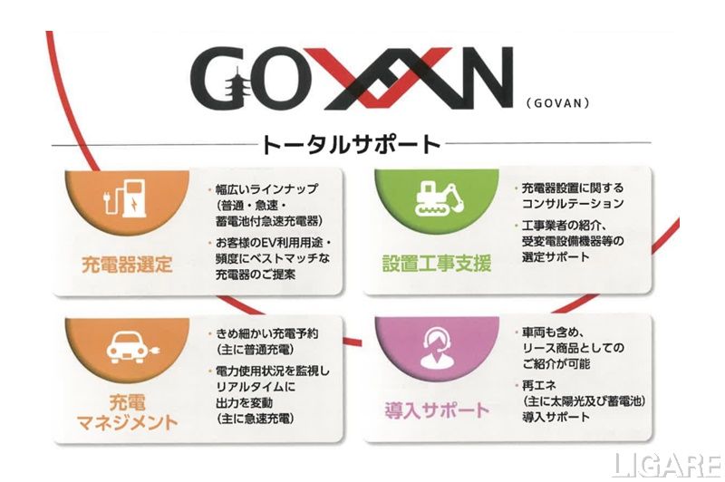 GOVANは、商用EV用充電システムの導入時のコンサルティングから日々のオペレーションに至るまで、充電マネジメント業務をトータルサポートするサービスだ。商用EV導入における利用者の悩みをまとめて解決する。