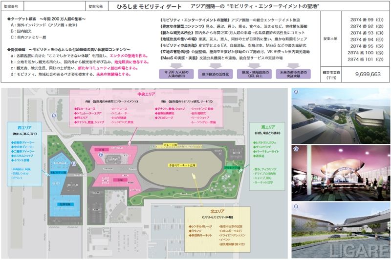 今回共同準備室設置で合意したのは、トムス、株式会社バルコム、株式会社広島マツダ、およびマツダ株式会社の4社だ。4社は、トムスを代表法人として、広島県の「現広島FMP開発事業用地の利活用に係る事業提案募集」に「ひろしまモビリティゲート(名称仮)アジア圏随一の“モビリティ・エンターテイメントの聖地”」を提出した。4社は、このプロジェクトが採択されて以降、提案事業を具現化するための方策を協議・検討してきた。