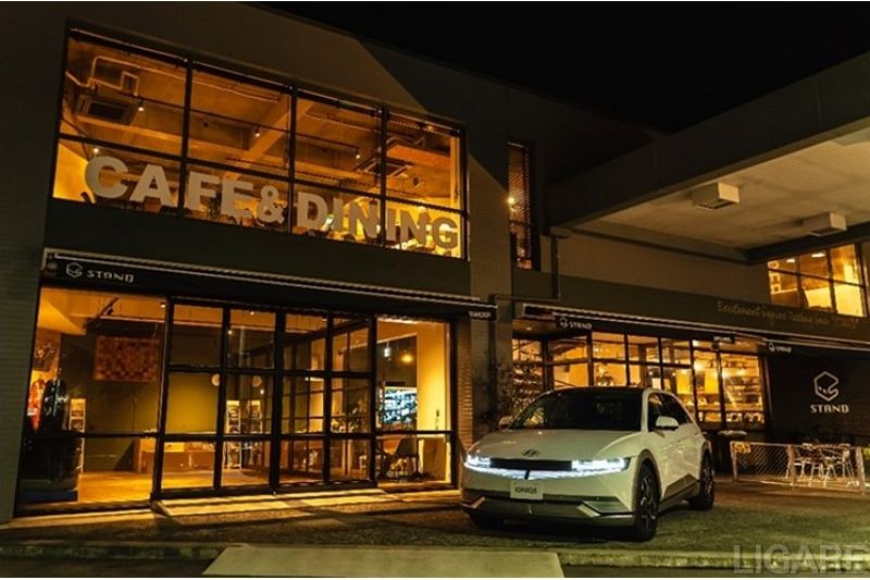 同検証は、MCEの特約店である東光グループが熊本県熊本市で運営するカフェ&ダイニング「STAND(スタンド)」内で、1号店としてテスト運用を開始する。同カフェは、既存のSSを業態転換した店舗だ。MCEは、出入り口が広く、展示スペースが取れるなどの理由から、同店舗をテスト運用店として選定している。