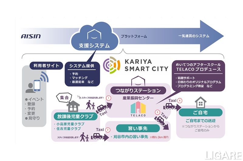 同プロジェクトの目的は、習い事への送迎交通サービスと学校外教育サービスを統合して提供することだ。愛知県刈谷市(以下、刈谷市)をフィールドとした実証プロジェクトである「刈谷スマートシティ」の取り組みの一環として実施する。