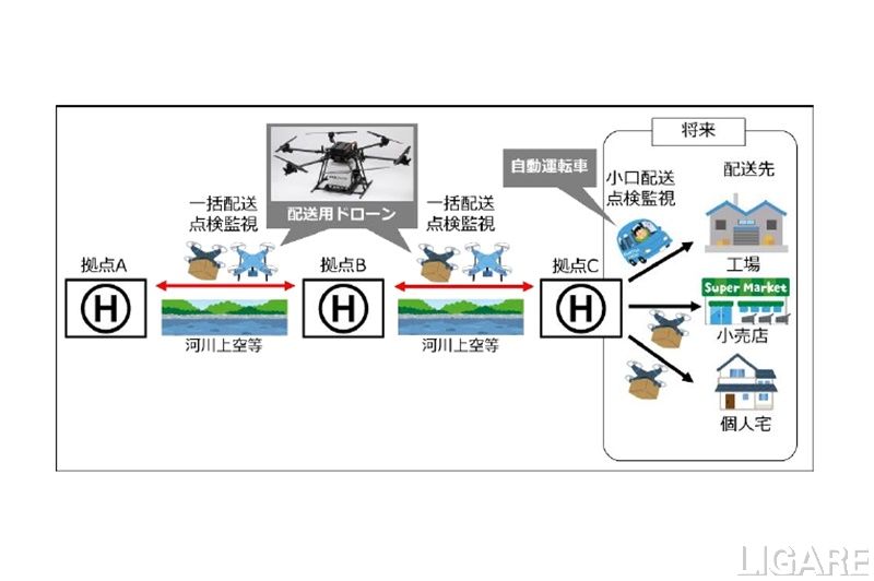 ほかにも、安全かつ高速運用を可能とするドローン専用航路の作成と検証を行うとともに、輸送と点検・巡視を組み合わせたドローンの運用効率化について検証するという。実施日時は1月31日の予定だ。