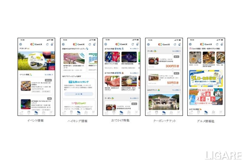 同ページでは、愛知県・岐阜県で開催される最新イベント情報や外出特集、スポットの情報が閲覧できるほか、アプリ内コンテンツであるデジタルハイキングやデジタルチケット・クーポンの情報も確認ができる。さらに、CentXアプリが連携するInstagramアカウントが発信するグルメ情報や、名鉄グループのおすすめ情報にもアクセス可能だ。