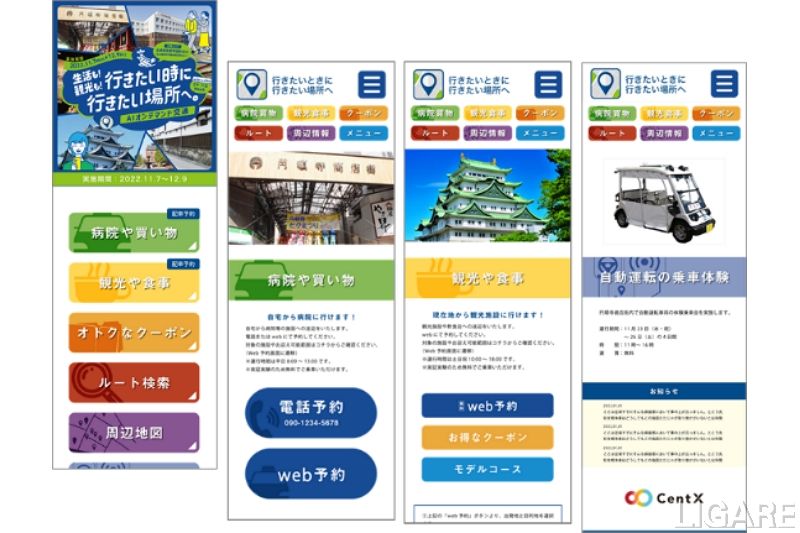 ほかにも、同実証実験では、オンデマンド交通用のタクシー車両以外に、学童保育事業の送迎車両を活用する。同車両は、AIにより配車やルート等が最適化したオンデマンド交通運行計画に従って運行する予定だ。施設送迎は平日8時~13時、観光周遊は土休日、および一部の平日10時~18時に実施する。