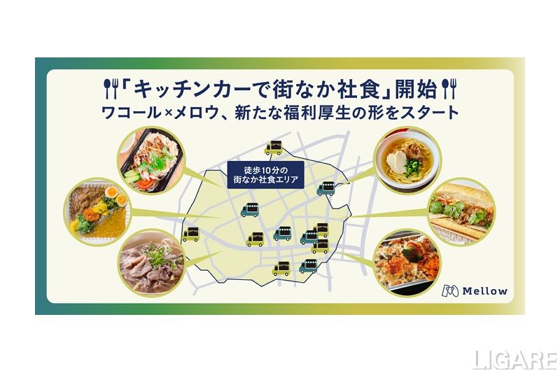 株式会社Mellow (以下、メロウ)は、キッチンカーを社員食堂のように利用できる「キッチンカーで街なか社食」を開始する。1月12日付のプレスリリースで明かした。第一弾として、株式会社ワコール(以下、ワコール)と連携し、取り組みを開始する。