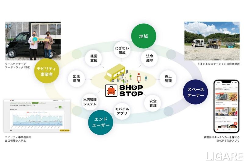 SHOP STOPは、コロナ禍以降もスペース増加を続けており、2022年11月の前年同月比で1.5倍の伸びとなっている。エリアによっては、徒歩10分圏内に約100店舗のキッチンカー利用を実現している。このため、同社は、エリア内のキッチンカーをシームレスに利用できれば、街なかを社食のように楽んでもらえると考えているという。