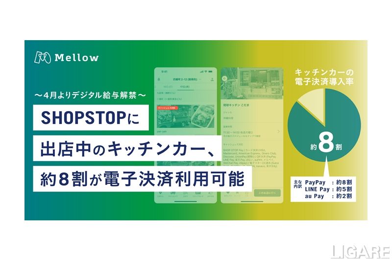 株式会社Mellow(以下、メロウ)は、同社が展開するプラットフォーム「SHOP STOP」に登録中のキッチンカーの電子決済導入状況を公開した。4月13日付のプレスリリースで明かしている。この結果、首都圏の「SHOP STOP」に出店している移動販売車のうち、約8割の事業者が電子決済を導入済みであることが判明した。