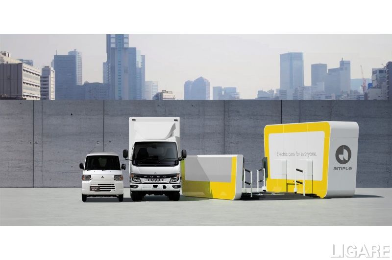 三菱ふそうトラック・バス(以下、MFTBC)、三菱自動車、Ample Inc.(以下、Ample)、ヤマト運輸の4社は6月6日、バッテリー交換式EVとバッテリー交換ステーションの物流事業者の業務における実用性に関する実証を9月から東京都で開始することを発表した。
