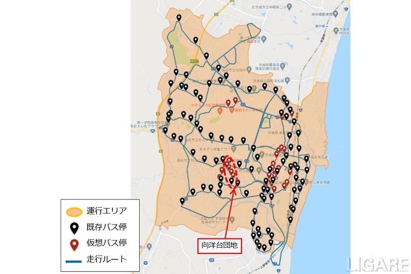 なお、今回の事業は、2021年3月23日に高萩市と茨城交通、みちのりHDで締結した「ダイナミックルーティング実証実験にかかる協定書」に基づいて実施する。2021年7月より段階的に対象利用者を拡大し、年度内には高萩市内の既存の路線バス運行エリアほぼ全域にサービスを拡大する予定だと述べている。