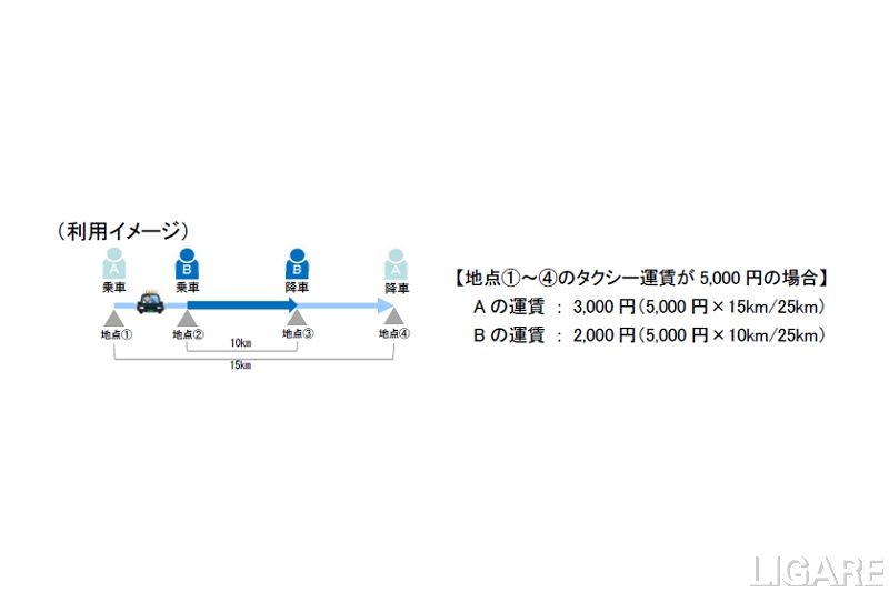 タクシーの「相乗りサービス」とは、配車アプリ等を通じて、目的地の近い旅客同士を運送開始前にマッチングし、タクシーに相乗りさせて運送するサービスだ。タクシー独自の運送形態であり、運送開始後に不特定の旅客が乗車できるバスとは異なっている。