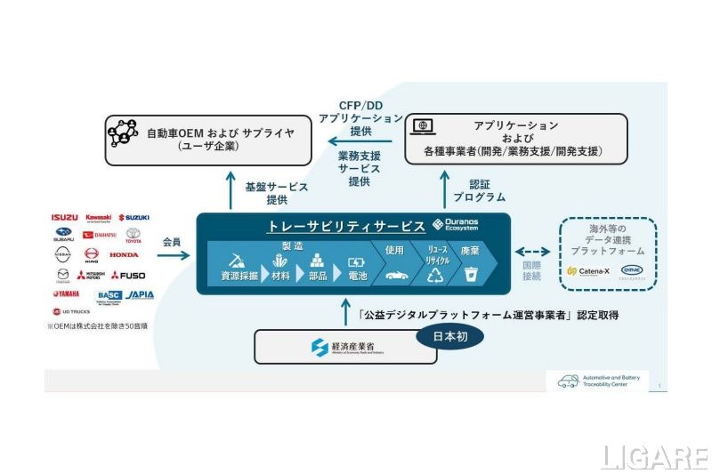 経済産業省は5月9日、「ウラノス・エコシステム・プロジェクト制度」に基づいて、産業データ連携の促進に向けた優良な取り組みとして自動車・蓄電池のカーボンフットプリント(以下、CFP)・デューデリジェンス(以下、DD)データ、および電力データに関連する2プロジェクトの選定を発表した。