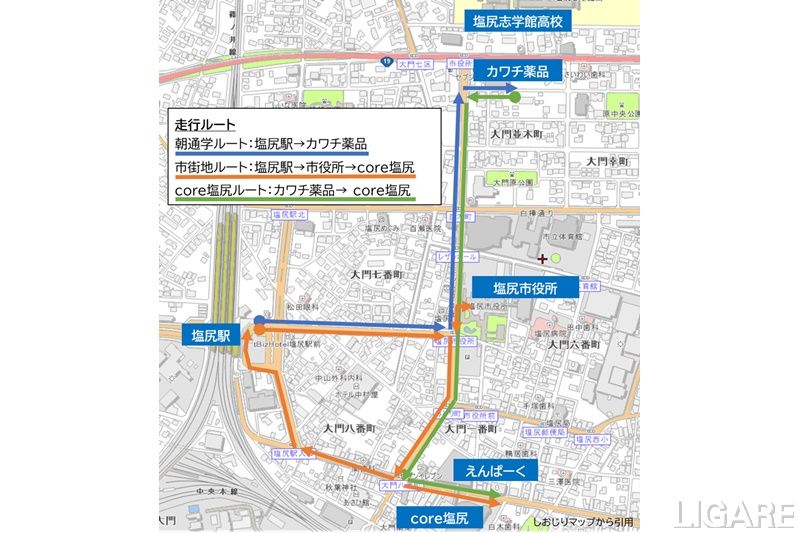 塩尻市では、2020年度から自動運転、およびAI活用型オンデマンドバスを含むMaaS実証実験を実施してきた。AI活用型オンデマンドバスは、2022年度からコミュニティバス路線の一部に置き換わり、本格運行を行っている。