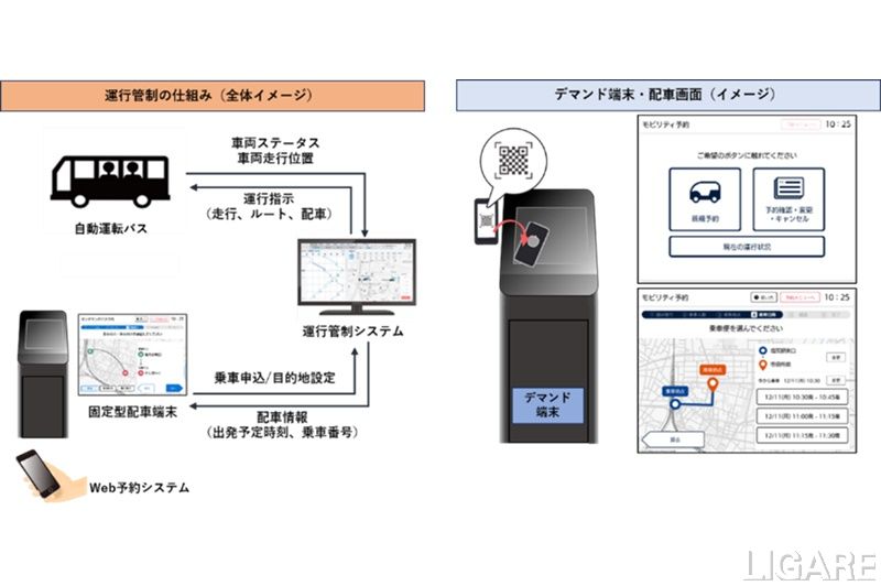 具体的には、ティアフォーが開発した新型EVバス車両を導入し、市内中心市街地において自動運転レベル2走行実証を行う。さらに、ティアフォーからアルピコ交通のドライバー及び自営型テレワーク事業「KADO」人材へ運行オペレーションの技術移転を行い、地域人材による運行を行うという。ほかにも、固定型端末機およびWeb予約システムによる自動運転車両予約体制を構築し、遠隔監視・運行管理・運行管制システム・信号機連携実証もあわせて実施する予定だ。くわえて、事業認知度向上や自動運転の走行特性や安全性の理解促進に向けて教育機関等と連携し、学生や高齢者向けの自動運転出前講座や一般試乗会を実施するとのことだ。