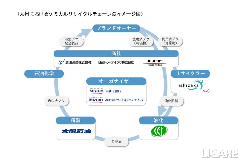 みずほ銀行とみずほリサーチ&テクノロジーズは3月30日、有価物回収協業組合石坂グループ、CFP社、太陽石油、豊田通商、日産トレーデイング、およびホンダトレーディングとともに、プラスチックのサーキュラーエコノミー実現に向けた取り組みの一環として、九州を中心にケミカルリサイクルを活用したプラスチックリサイクルのサプライチェーン構築の実現可能性について共同研究実施を発表した。