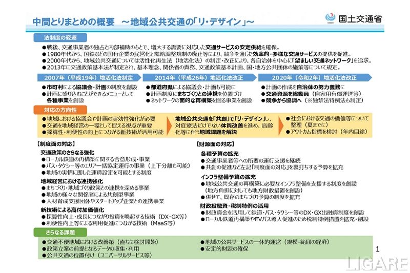 国交省、地域公共交通の「リ・デザイン」の中間とりまとめを公表