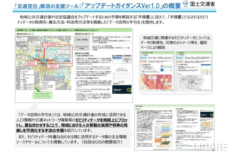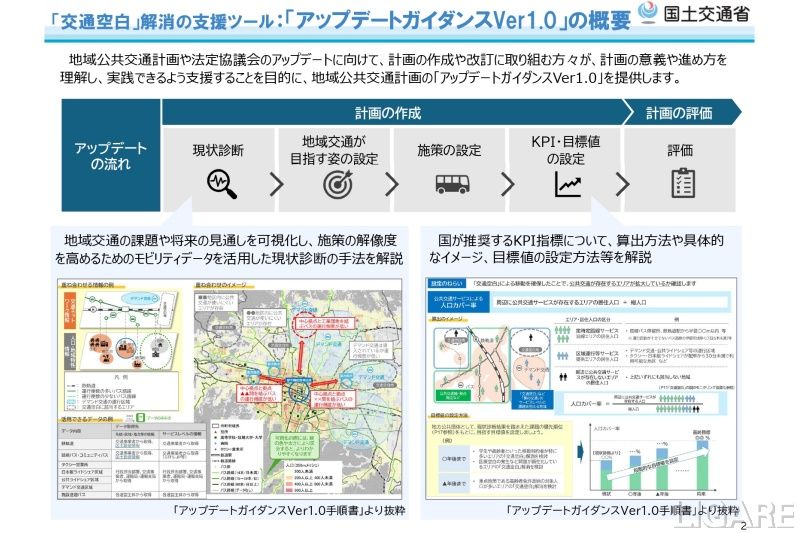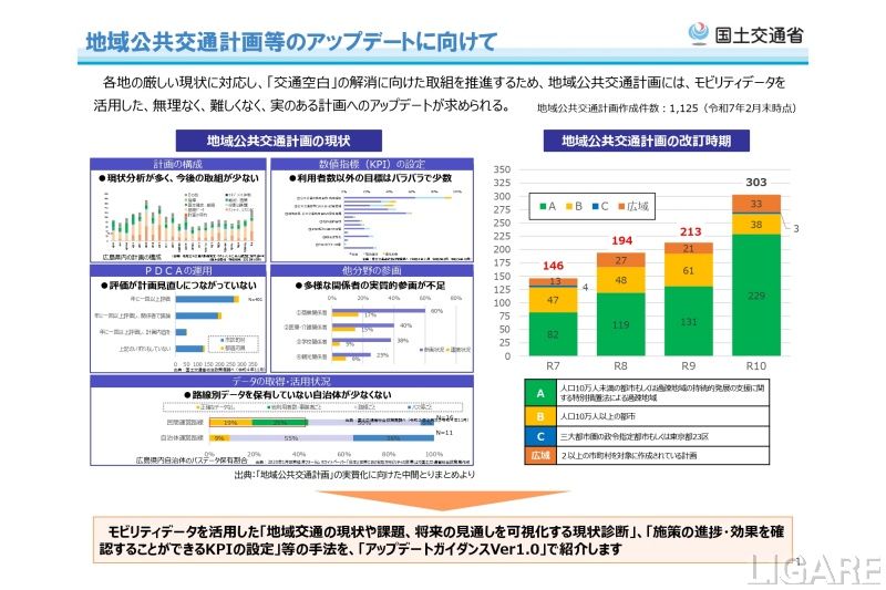 国土交通省は3月31日、地域公共交通計画の立案等にあたってのモビリティデータの活用方法等を紹介した「アップデートガイダンスVer1.0」を公表した。