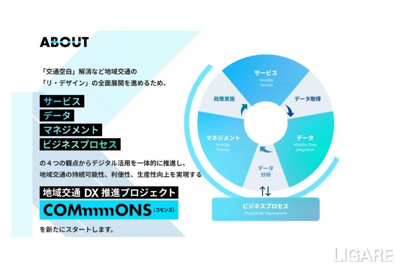 国土交通省は、全国の「交通空白」解消など地域交通の「リ・デザイン」をさらに加速し、持続可能な地域交通を実現するため、連携・協働を軸とした地域交通DX推進プロジェクト「COMmmmONS」(コモンズ)を新たに開始することを発表した。