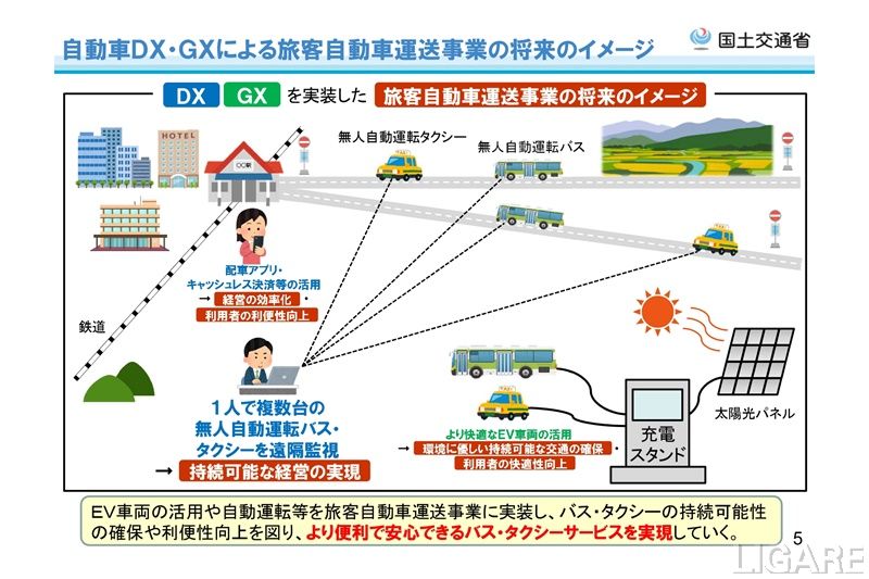 バス・タクシー事業における運転者等の担い手不足は深刻であり、魅力的な職場環境の整備等による採用力の向上や交通サービスの生産性・効率性・利便性の向上につながる自動車DX・GXが重要となっている。