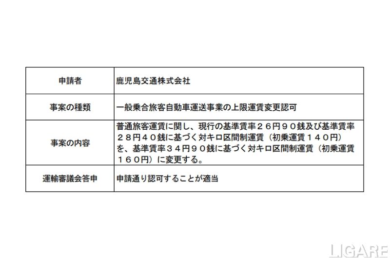 国土交通省は7月26日、鹿児島交通株式会社(以下、鹿児島交通)からの乗り合いバスの上限運賃変更認可申請事案に関する運輸審議会における答申結果を発表した。