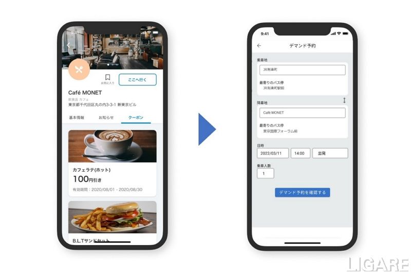 このため、企業や自治体は、「MONET デマンド交通キット」を活用することで、観光アプリや商業施設のアプリなど、さまざまなサービスへ簡単にデマンド交通の機能を組み込むことが可能だ。これにより、ユーザーは一つのサービス・アプリ内でデマンド交通を予約することができるようになる。