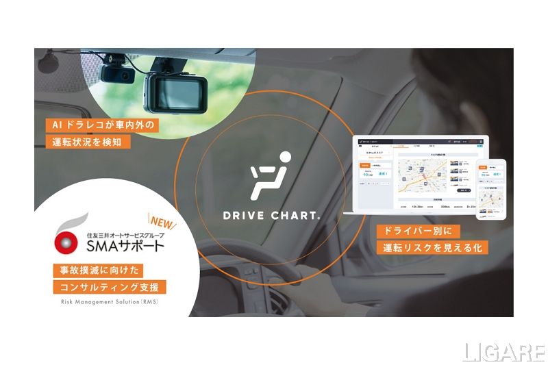 同提携では、両社の強みを生かし、「事故後の結果指標」と「事故前の危険運転指標」を補完。法人用車両の事故削減支援を強力に推進する。「DRIVE CHART」の利用料金をリース料金等と併せて、SMAサポートに一括で支払うことも可能だ。