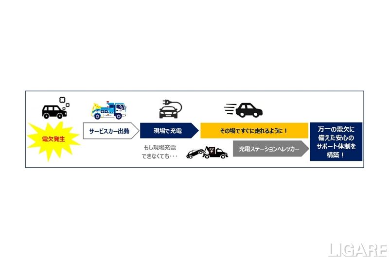 なお、5社は、今回のトライアルを通じて、サービスの実効性や効果の検証、ノウハウの蓄積を図る。同時に、将来的な自動車保険付帯ロードサービスにおける「電欠現場駆け付け充電サービス」の提供、JAF会員向け「無料サービスの適用範囲拡大」の実現といったユーザーの利便性向上を目指すと述べている。