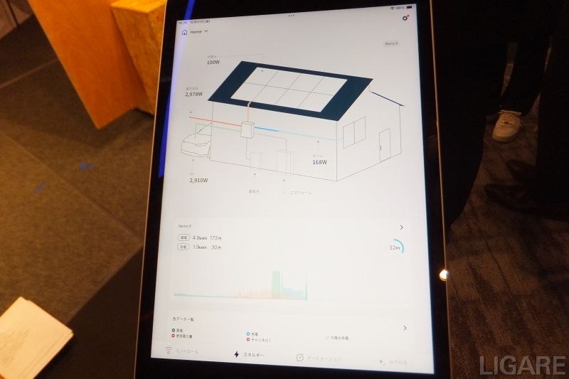 Remo Eシリーズと連携すれば、充電前後の電力消費を把握し、ブレーカーが落ちないよう充電のタイミングを自動で調整可能。さらに、太陽光発電で余った電気を売電せず充電に回す機能も備え、年間で最大5万円の電気代を削減できる。